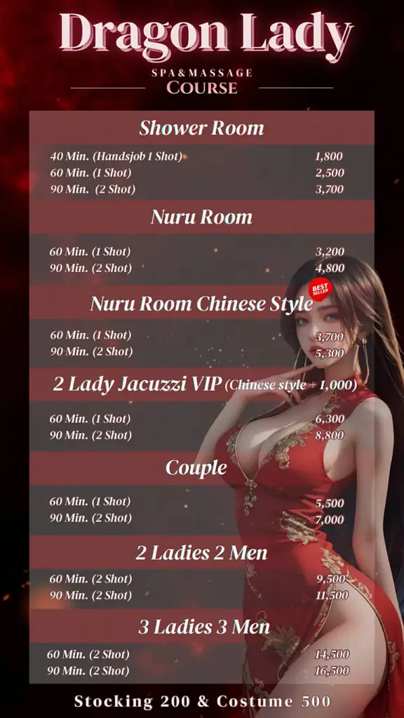 Dragon Lady opened in January 2026 right in the heart of Bangkok, and it is now the largest erotic massage shop in the city. We are always ready with hot and sexy Bangkok ladies, with around 30 girls on shift every day.