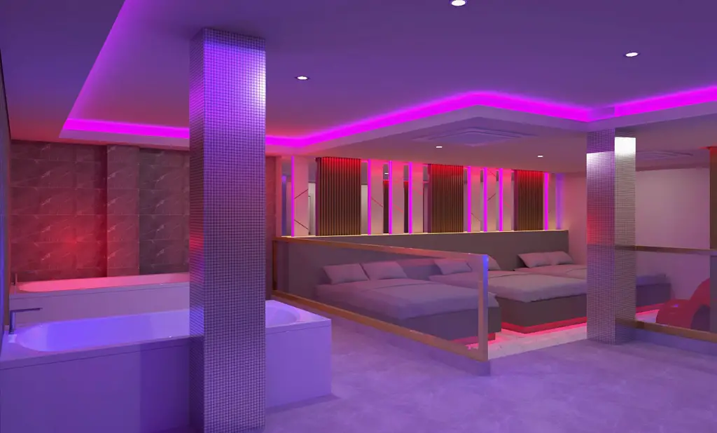 The venue itself is massive—the largest of its kind in Bangkok. From a luxurious hotel-style lobby to private rooms equipped with jacuzzis and special Nuru mats, everything here is designed to impress from the moment you walk in.